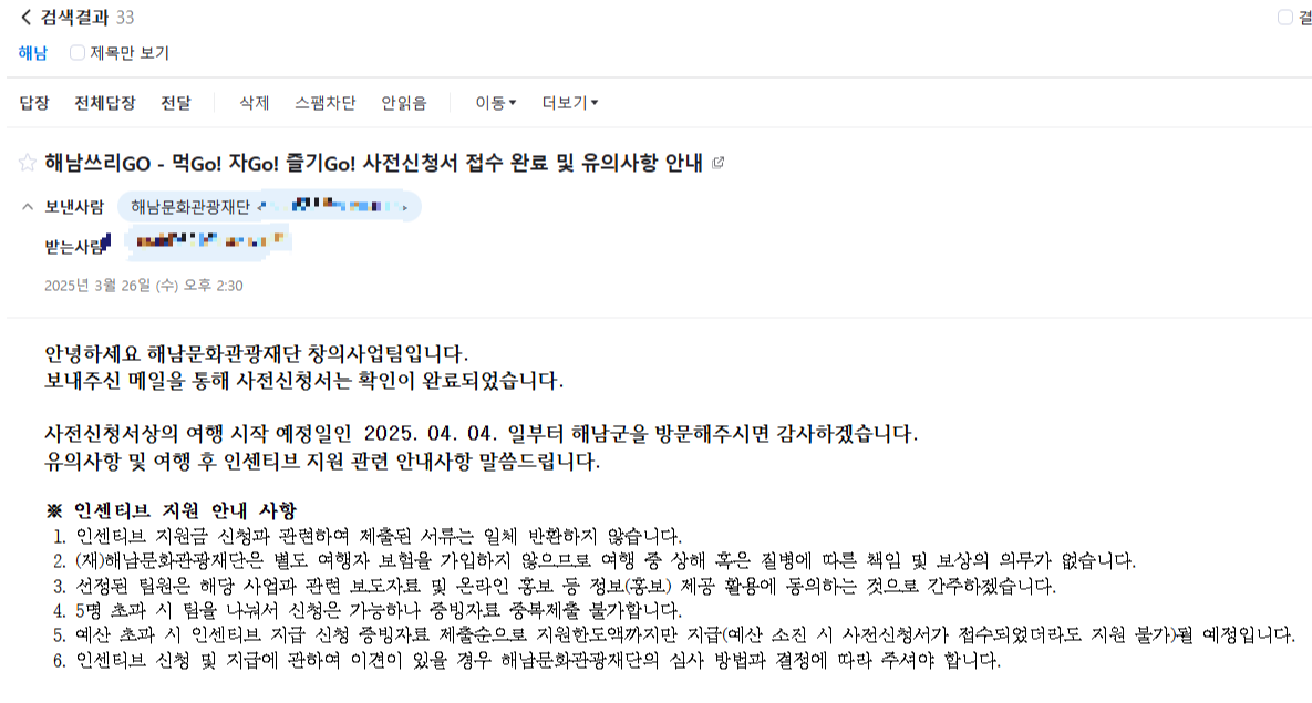 이전에 블로그에 해남 쓰리GO 여행지원 사업에 대해 올린 적이 있었습니다.