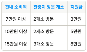 - 내용: 관내 소비 금액에 따라 차등 지급되는 인센티브