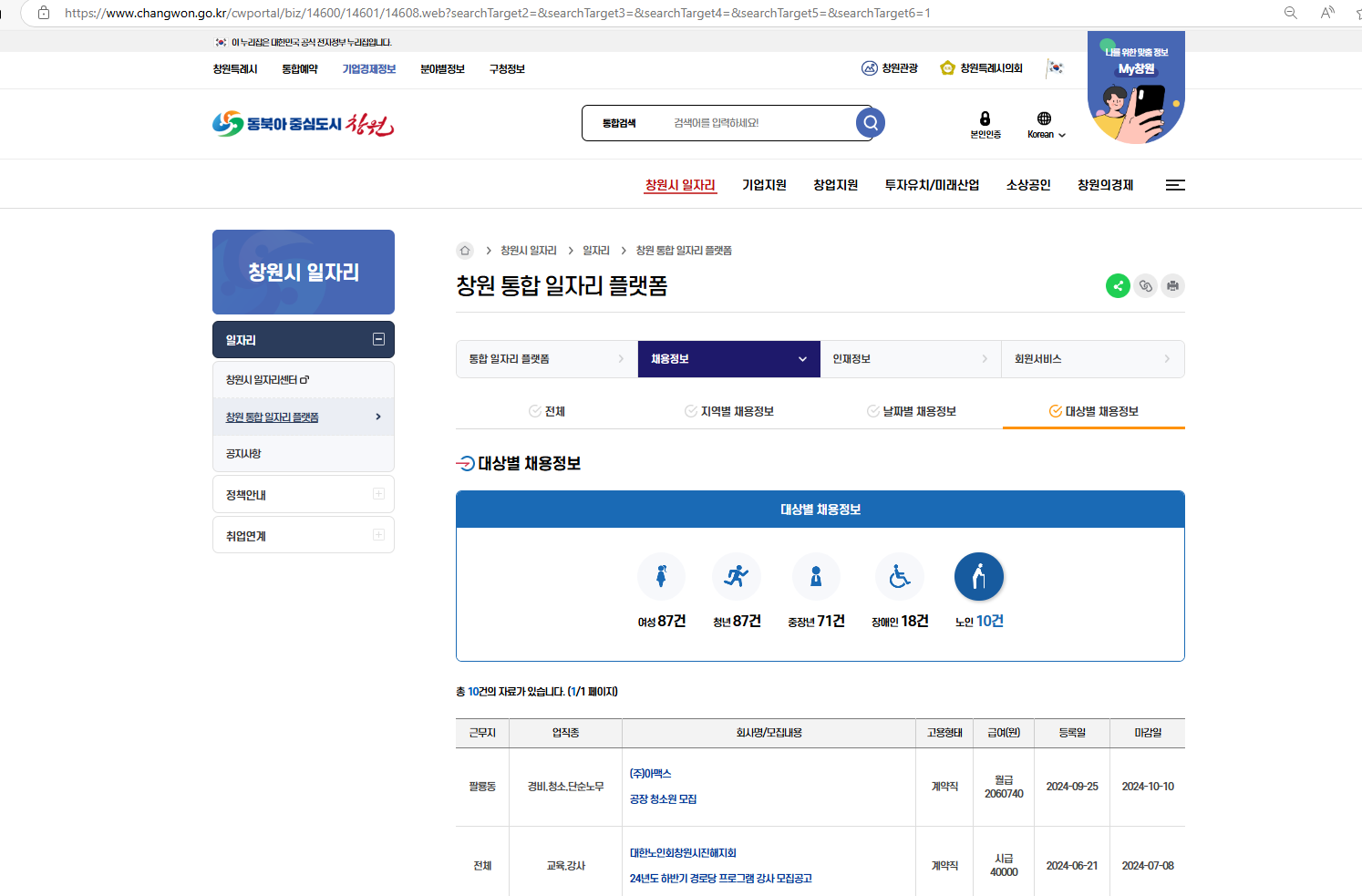 - 특징:창원시에서 하는 사업의 기간제 근로가 주로 올라온다(예:단감테마공원 기간제 근로자 등)