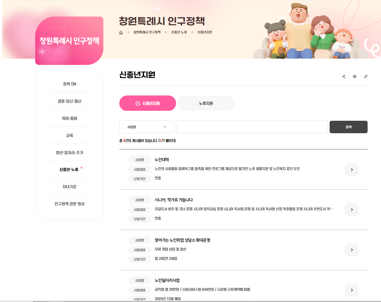 관심있으신 분은 위의 그림을 누르면 창원시-인구정책-신중년지원 사업이